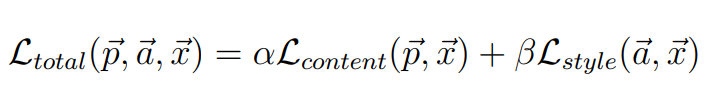 The output of the dense conv net is passed through the total loss function. The above image shows an accurate representation of this loss function. The total loss function is equal to the sum of the loss of the content image and the style image, where the alpha and beta represent the hyperparameters. For a more detailed analysis and understanding of neural style transfer, I would recommend looking into the following research paper.