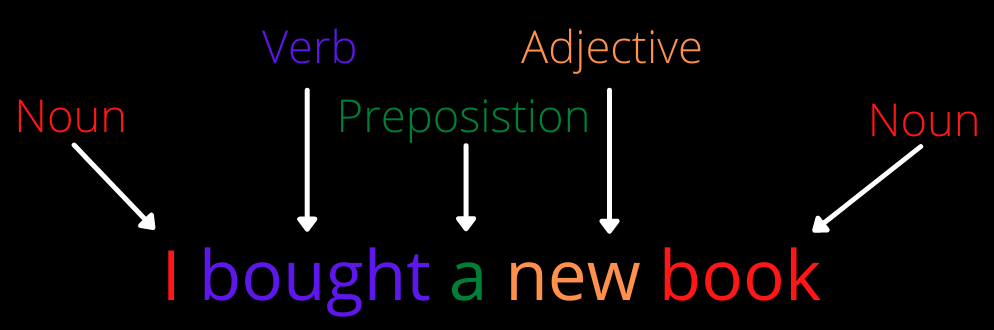 1. Label every word with its appropriate speech. This process is called Part-of-speech (PoS) tagging. For example, in the sentence “I am reading a book,” “I” is a pronoun, “am” and “reading” are verbs, “a” is a determiner, and “book” is a noun. There could be cases where a word could have one PoS in one sentence and a different PoS in the other; the word “watch” in the sentence “my watch had stopped” is a noun, and in the sentence “Lucy watched him go” is a verb. NLP has to have the intelligence to associate the right PoS with every word.