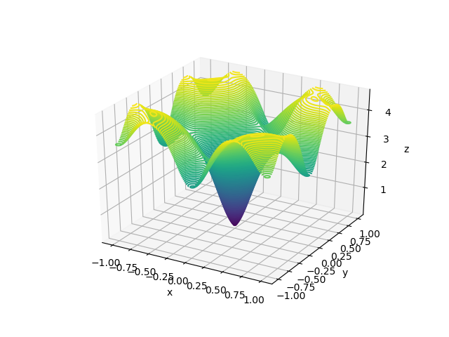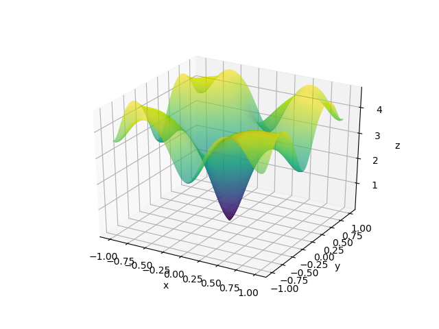 - np.exp(0.5 * (np.cos(2 * np.pi * x) + np.cos(2 * np.pi * y))) \