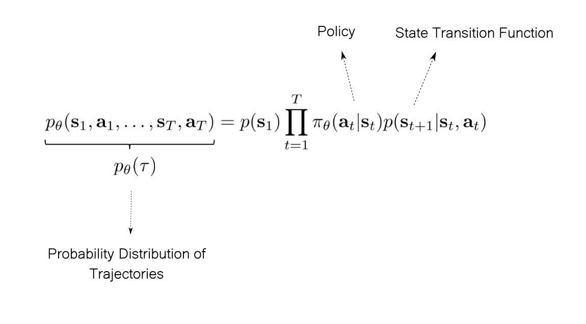 The probability of any trajectory starting from an initial state $ s_1 $ and ending in a terminal state $ s_T $ is given by
