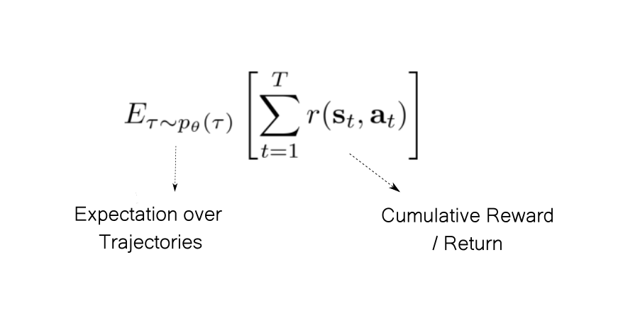 $$ \frac{1}{N} \sum_{i}^{N} \sum_{t} ^ {T} r(s_{i,t} , a_{i,t}), $$