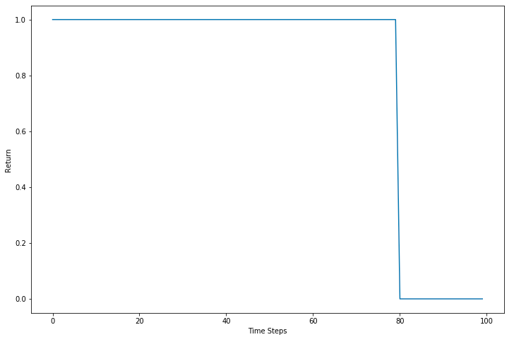 Note that it is very easy to get confused between reward and return. The environment provides the agent a reward for every single step whereas return is the sum of these individual rewards.