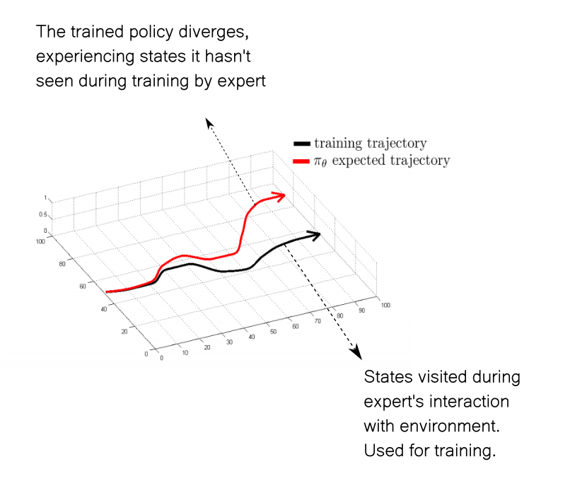 One famous work in imitation learning that has been used to combat distribution shifts Dagger, a link to which I have provided below. However, this approach was also marred by high data acquisition costs both in terms of money and time spent.