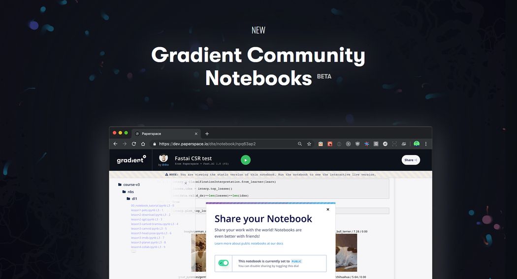 Gradient Community Notebooks are focused on just that—the Community. All notebooks are set to public, and can be shared and forked by other Community members.
