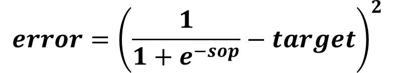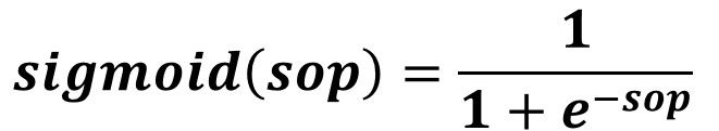 After calculating the SOP, next is to feed it to the activation function in the output layer neuron. Such a function helps to capture the non-linear relationships between the inputs and the outputs and thus increasing the accuracy of the network. In this tutorial, the sigmoid function will be used. Its formula is given in the next figure.