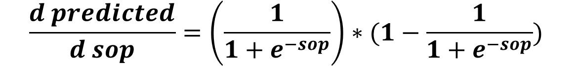 After that, we can calculate the derivative of the predicted to the sop by calculating the derivative of the sigmoid function according to the figure below.