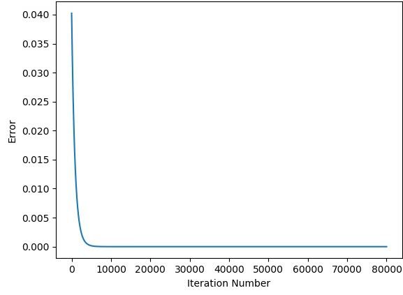 The next figure shows how the network error changes by iteration when the learning rate is 0.5.
