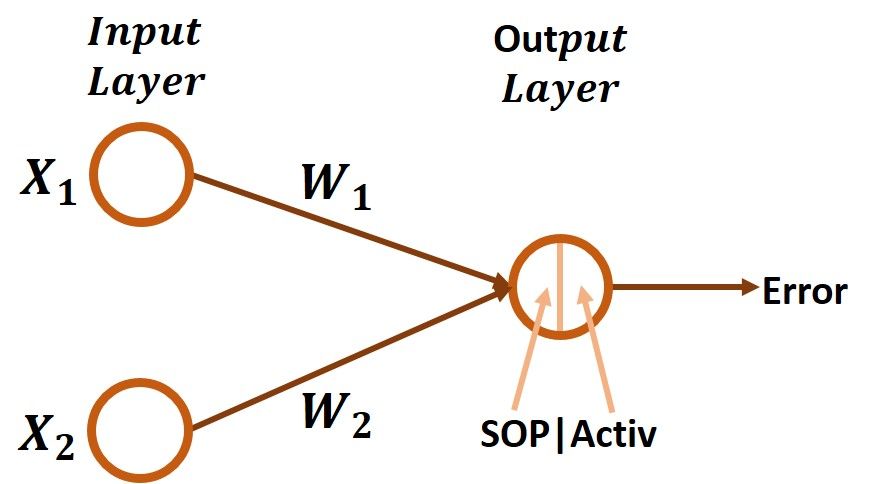 - Calculating the SOP by summing the product between the 2 inputs and the 2 weights.