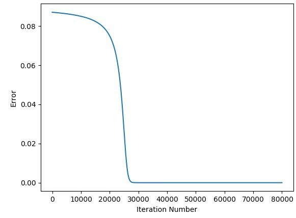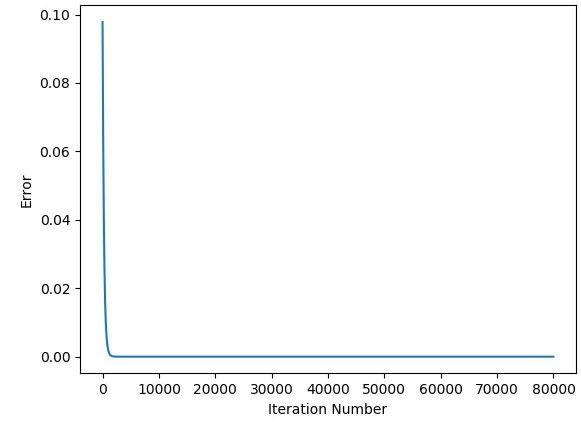 The next figure shows how the error changes by the iteration number. The error is 0.0 after 5,000 iterations.