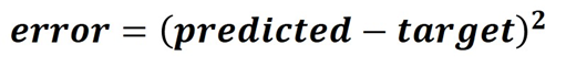 The error is calculated using the standard squared error function.