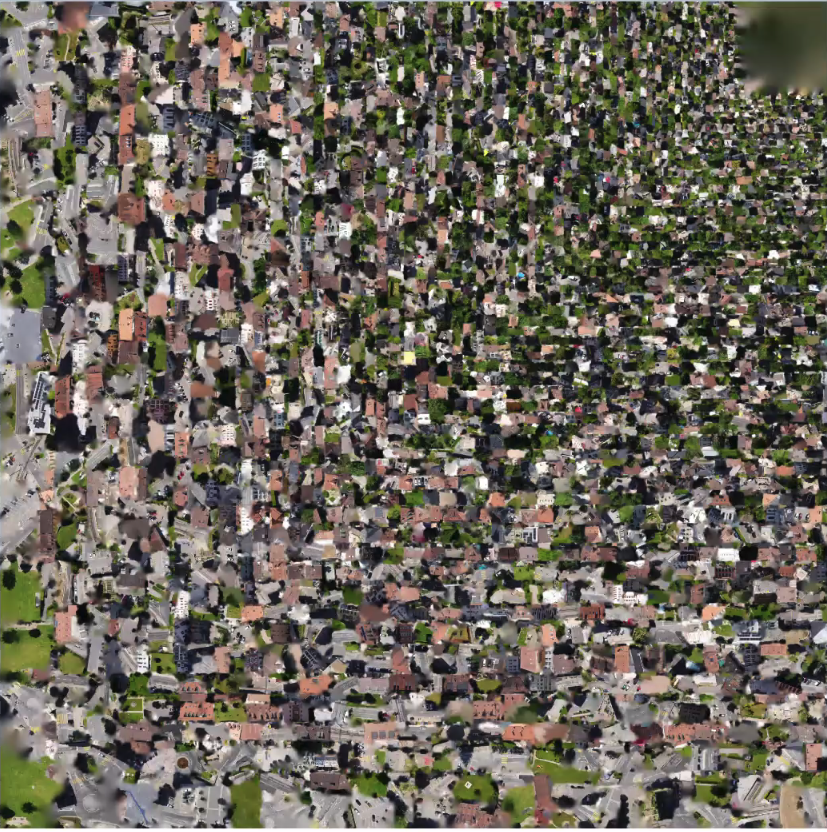 The orthomosaic is a 2D representation of the collected images that has information about X, Y, and color values for the mapped area. It differs from photostitching in that the orthorectification method removes the perspective distortions from the images using the DSM. This does, however, require a high number of matches/keypoints (more than 1000) to generate the model. In effect, the orthomosaic corrects the perspective of the camera and augments the representation to use a different scale based on the distance that each point of the object/ground has from the camera. This allows orthomosaics to be so useful for making measurements, as the object was created with regard to the relative distances and sizes of the objects pictured with regard to one another.