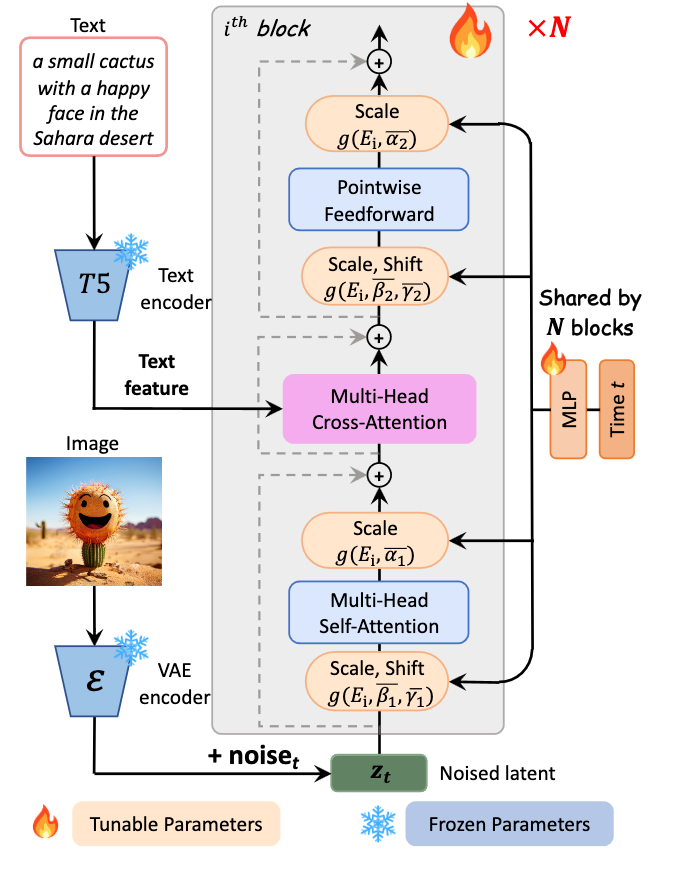 Let's walk through the process each text-image pair makes through a Transformer block during training, so we can have a better idea of what other changes they made to DiT-XL to garner such substantial reductions in cost.