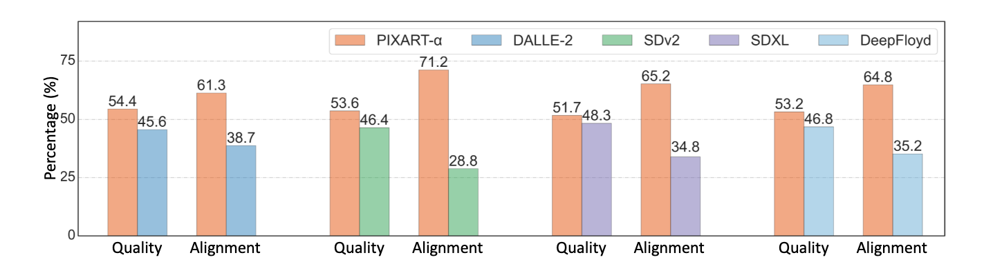 All together, these metrics indicate that PixArt was incredibly affordable to train compared to competition, but how does it perform in comparison?