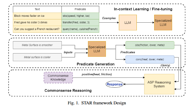 - In both question-answering tasks, they are able to build proof trees for the generated answer so that the results can be understood by humans. When the models are just run with the LLMs, it is impossible to see the limitations and potential design changes; the knowledge predicates make this possible. They find that STAR performs significantly better in the conversational bot task, which requires deep reasoning, both in its ability to elicit information from the user and in its ability to provide restaurant suggestions that are accurate with respect to the database of restaurants it owns.