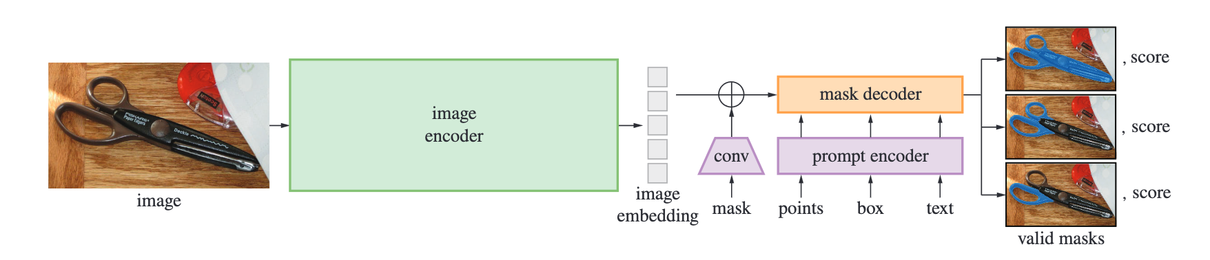 - The first is an image encoder: it is a pre-trained Vision Transformer (ViT) minimally adapted to process high resolution inputs. The image encoder runs once per image, and can be applied prior to prompting the model. The embedding is then passed onto a flexible prompt encoder. (source)