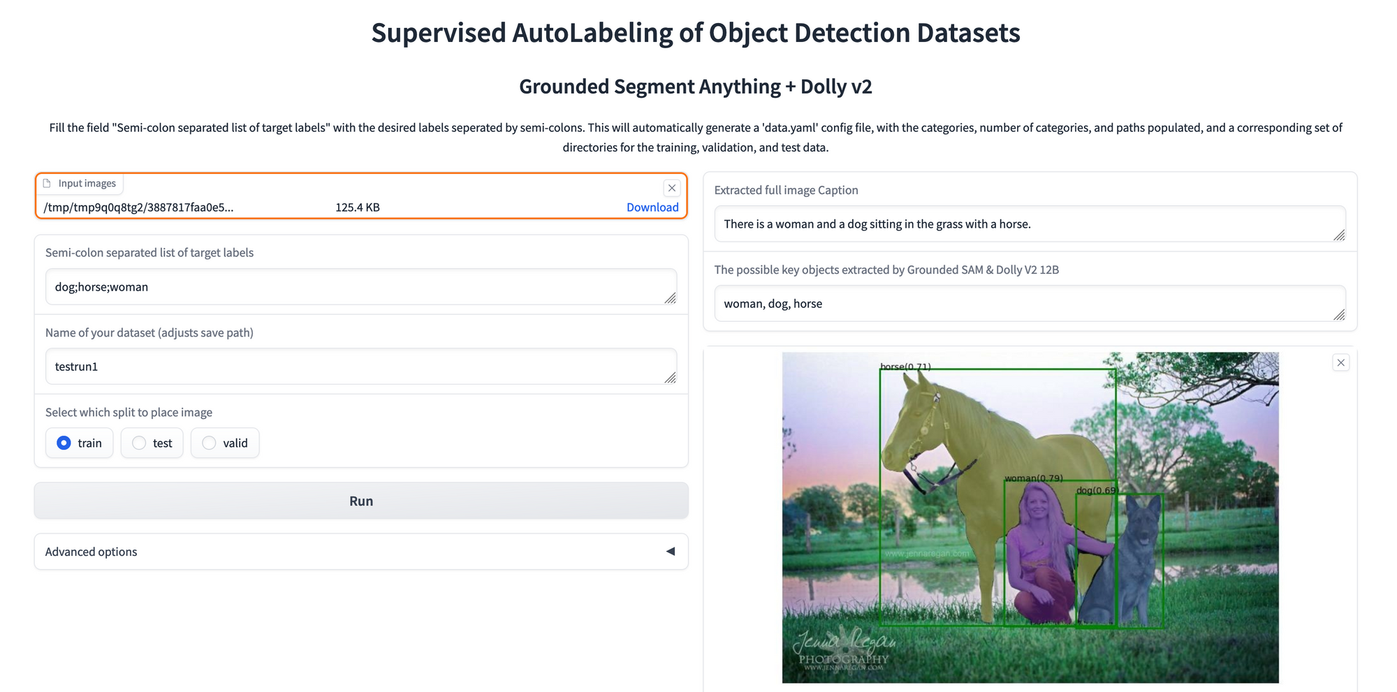 Seeking a completely open source alternative, we have created our own application to run with Gradient using the open-source Large Language Model Dolly. We have named it SAM-Dolly-AutoLabeler.py. Follow the instructions below to learn how to use the application.