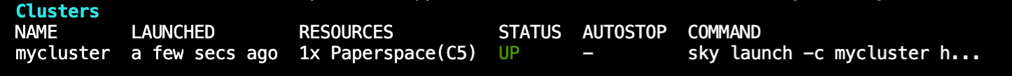 pip install "skypilot-nightly[paperspace]"Few additional packages: