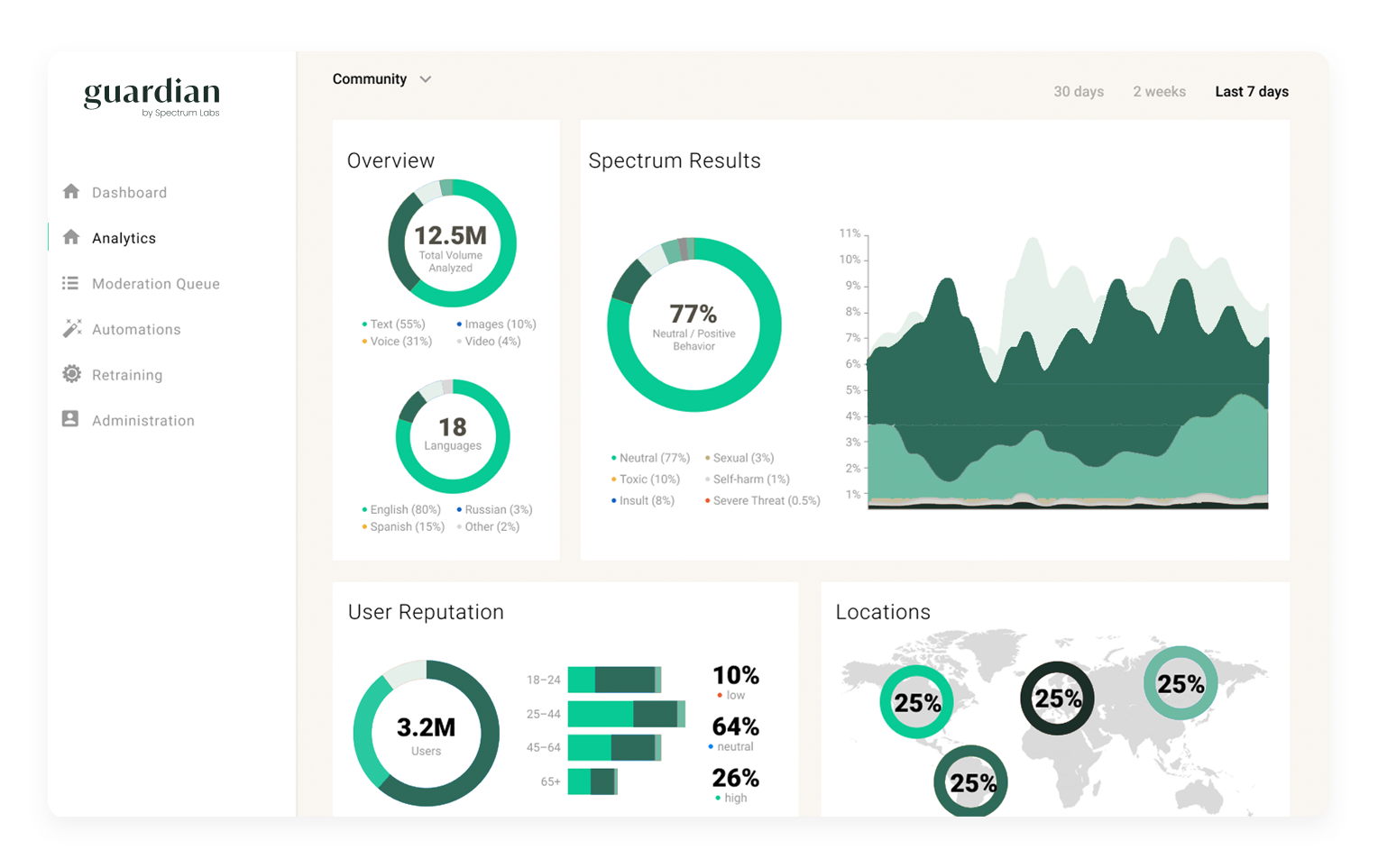Spectrum Labs is known for its highly accurate, tunable context-aware models and its workflow tool, Guardian. The company uses fundamental NLP techniques (such as vectorization) across multiple inputs (such as textual data and various forms of metadata) to create trustworthy signals about user behavior. Spectrum then delivers these models as endpoints to its partners to detect scamming attempts, misogyny, severe threats, unwelcome sexual advances, hate speech, harassment, and so on.