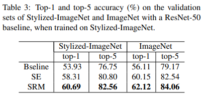 Similar to the previous results on ImageNet, SRM holds a strong place in the case of Stylized ImageNet, as showcased in the above table.