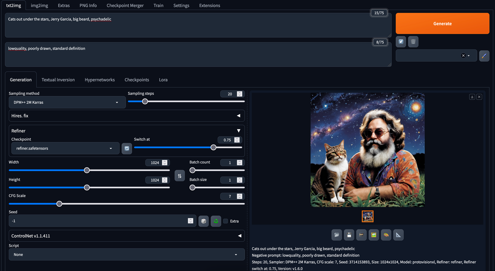 The original release of the Stable Diffusion repo came pre-packaged with several scripts for making simple inference with their pretrained models, provided they had downloaded it onto their machine. Notably, there were two scripts for text-to-image generation and image-to-image generation. While these worked perfectly well, there were many parameters for inference missing that current Stable Diffusion users would miss dearly, such as negative prompts. Furthermore, they were not designed for interface with other tools and extensions for SD. This makes using innovations like ControlNet tedious or impossible.