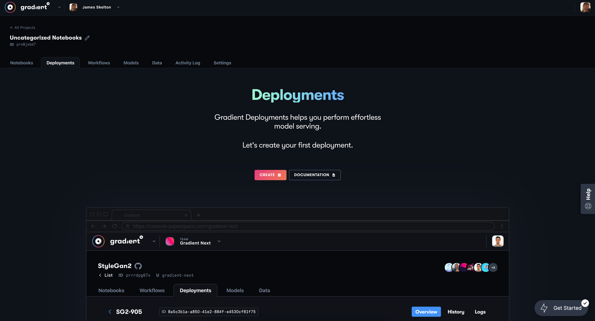 First, make sure that you have signed up for a Paperspace account and put a credit card on file. Unlike the Notebook version of this process, there is no Free-GPU option for the deployment. Keep this in mind if you intend to use the Web UI through this method. Go ahead and log in to your account and head to the Deployments tab of any project.