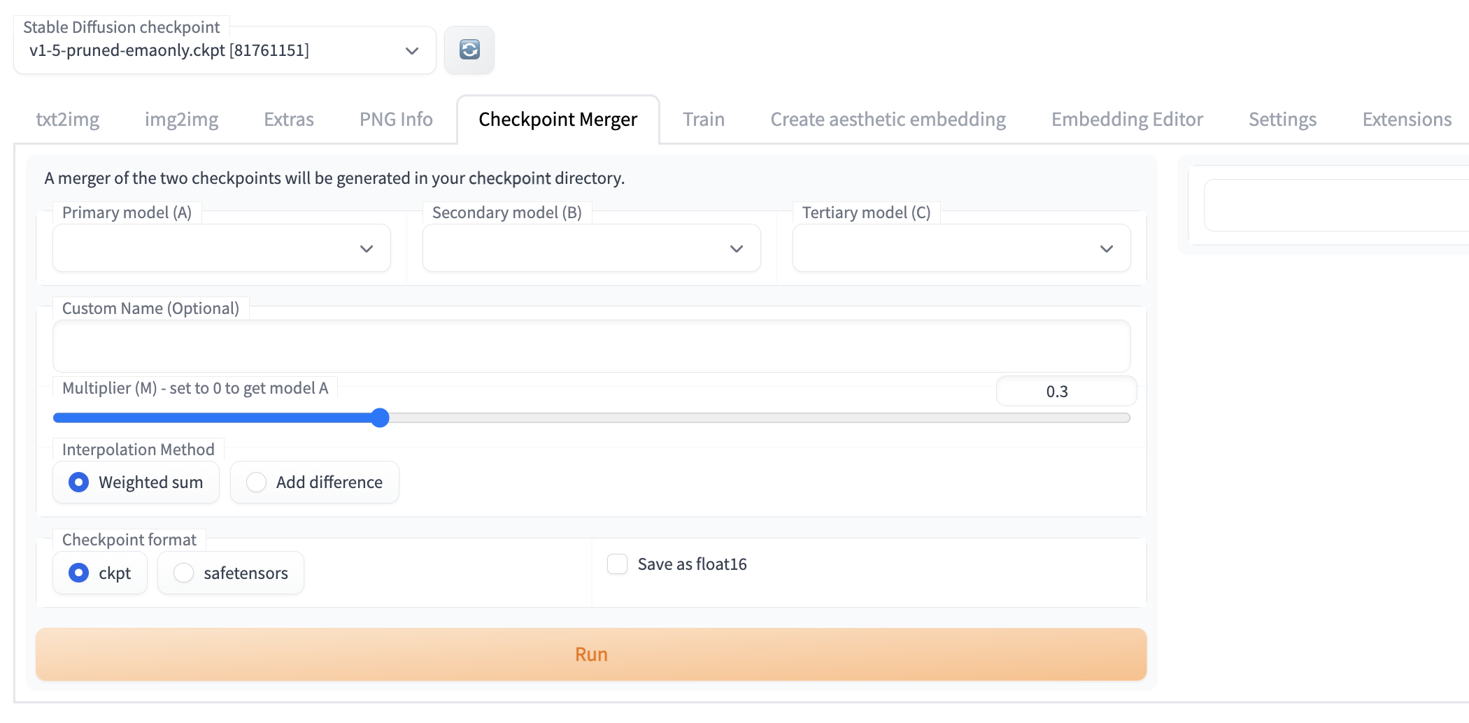 The checkpoint merger is one of the most useful tools in the Web UI. With this tool, it is possible to be more meticulous when combining two models. The slider allows the user to determine what rough "percentage" of the model weights are transferred to the output model, and allows users to iteratively test different combinations of models as needed.