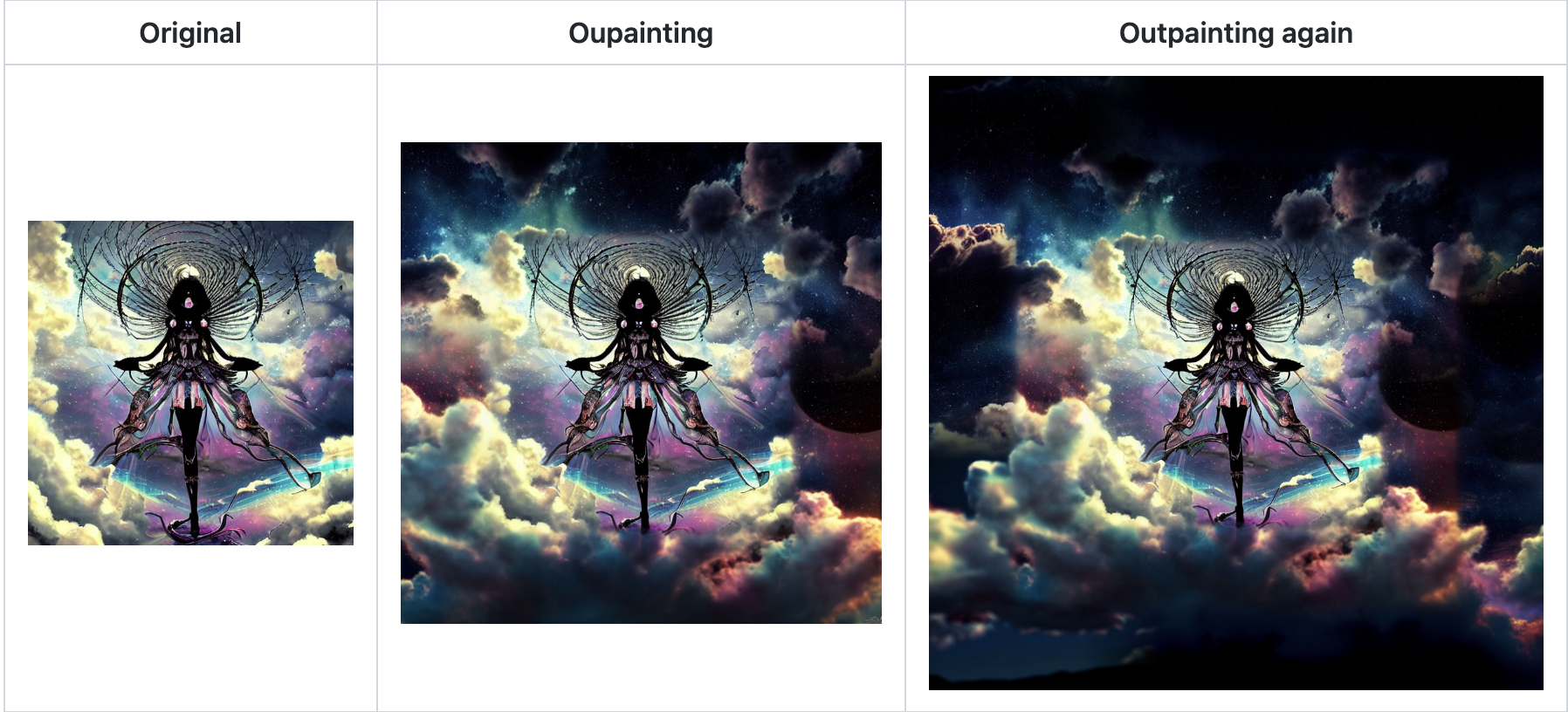 - Outpainting: use this to predict the visual context of an image beyond its boundary, i.e. filling in the missing information from outside the original bounds of the image to the new desired boundary.