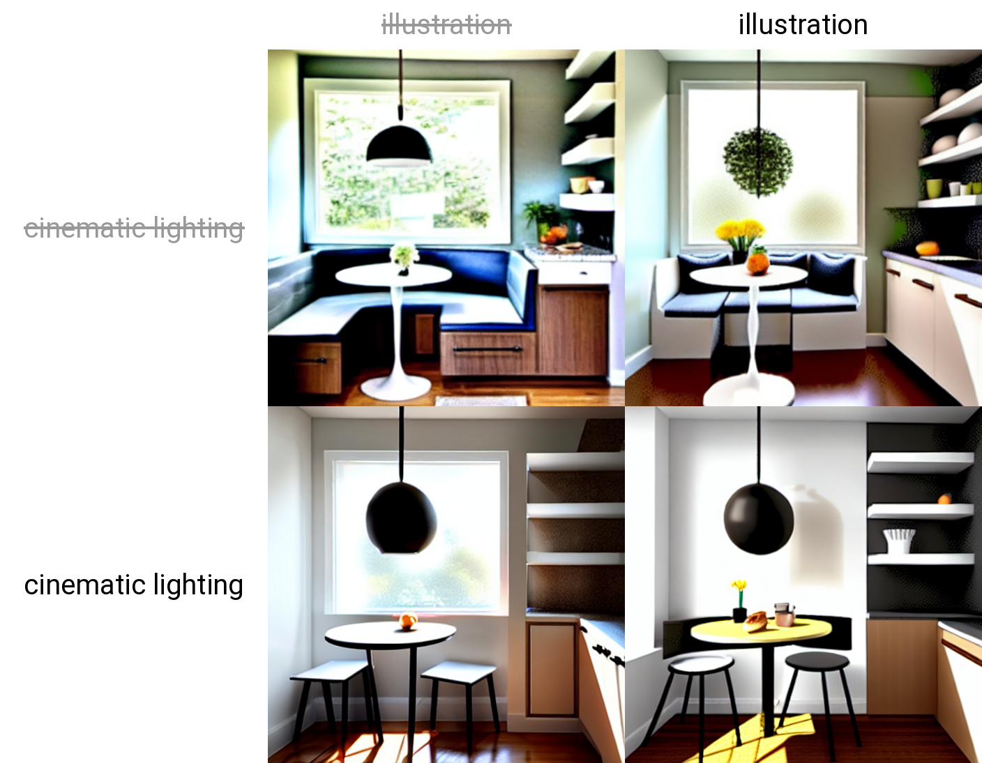 - Negative prompt: specific keywords that a user does not want to be imparted to the final image.