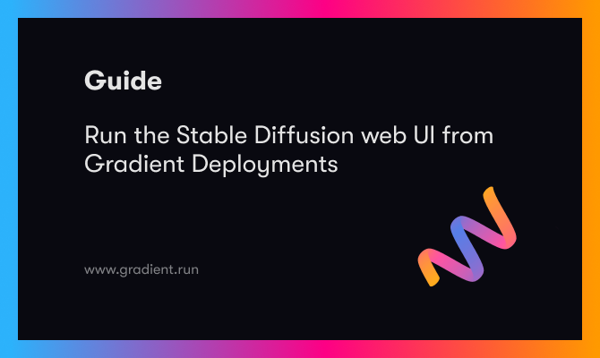 With Gradient Deployments, we can remove much of the headache for both sourcing compute and completing the setup to run the web UI. We have created a docker container that comes pre installed with all of the necessary packages and models needed to execute the web UI in a deployment. This public container can be accessed via Docker Hub for use with any Gradient Notebook, Workflow, or Deployment.