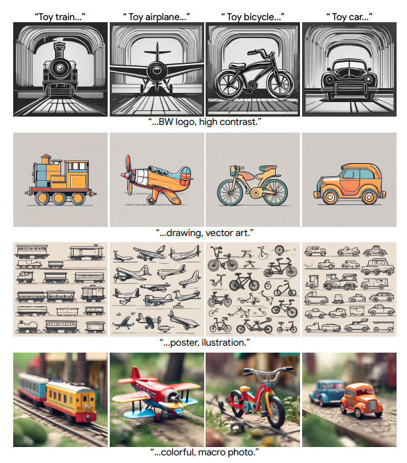 target_prompts = ["a train in flat design style", "the sun in flat design style"]