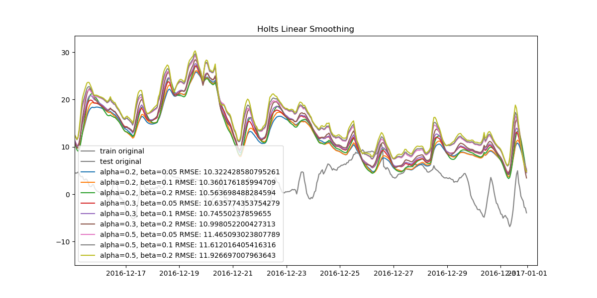 models[(sl,ss)] = holts_linear_smoothing(train, smoothing_level=sl, smoothing_slope=ss)