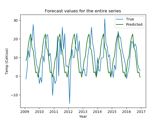 # predictions for the entire series
