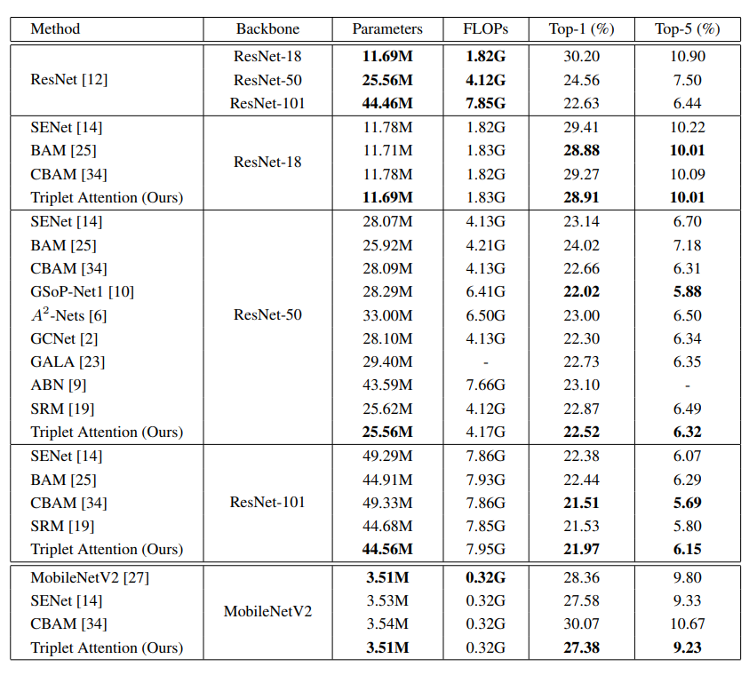 | Triplet Attention | 6k2 | 0.0048M |