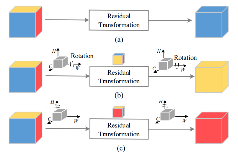 In an attempt to address the above-mentioned drawbacks, Triplet Attention proposes a novel and intuitive way of computing attention weights called Cross-Dimension Interaction. Cross-Dimension Interaction is a simple idea involving allowing the module to compute attention weights for each of the dimensions against every other dimension, i.e., $C \times W$, $C \times H$, and $H \times W$. This essentially allows it to compute both spatial and channel attention in a singular module. Cross-Dimension Interaction is achieved by simply permuting the input tensor dimension, which is followed by a simple residual transform that generates the attention weights. This thus allows the attention mechanism to form a strong dependency on each of the dimensions in the input tensor, which in turn is crucial for providing tighter bounds over the region of attention on the feature maps. Let's understand how Triplet Attention achieves Cross-Dimension Interaction.
