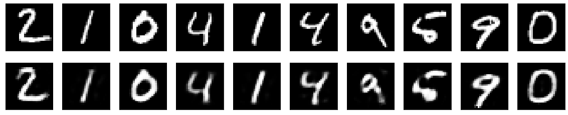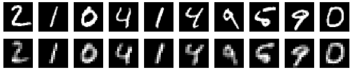 decoder = BatchNormalization()(activation_2)After running the following program for about 100 epochs, I was able to obtain the following results for the MNIST data. Feel free to test the code on other datasets as well and analyze the performance of your neural networks as you desire.