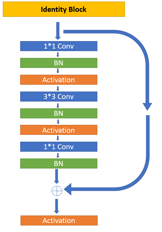 The identity block is used in the architecture when we know that the input and output dimensions must be preserved. It is a method often used to preserve the entities while also being an approach to avoid the bottleneck of the features of the model. The convolutional blocks C1, C2, C3, and C4 are formed by applying a convolutional block followed by $k$ number of identity block. This means the $C(k)$ feature map will consist of a single convolutional block followed by $k$ number of identity blocks. The code below is a representation of how you can perform this operation quite easily.