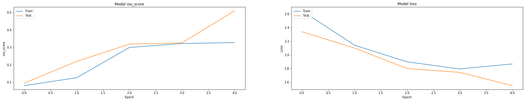 callbacks=callbacks1)After the computation of my project on the dataset, I was able to achieve the following IoU scores. The graphical representation for both the IoU of the model as well as the loss for the model is displayed below. To re-iterate, this graph is from an example project that I solved on the road segmentation dataset. You can choose to experiment on your own as well on different types of datasets.