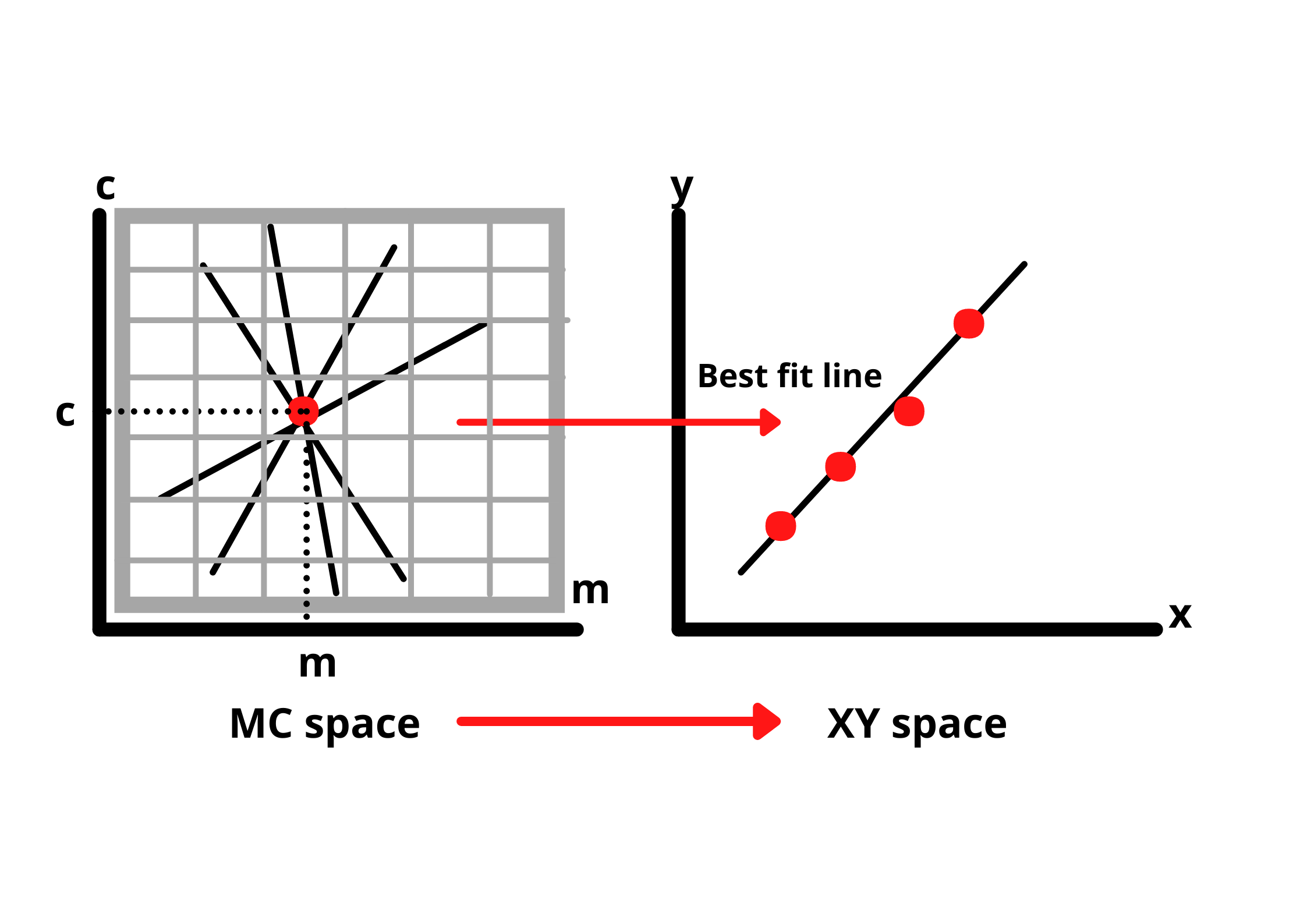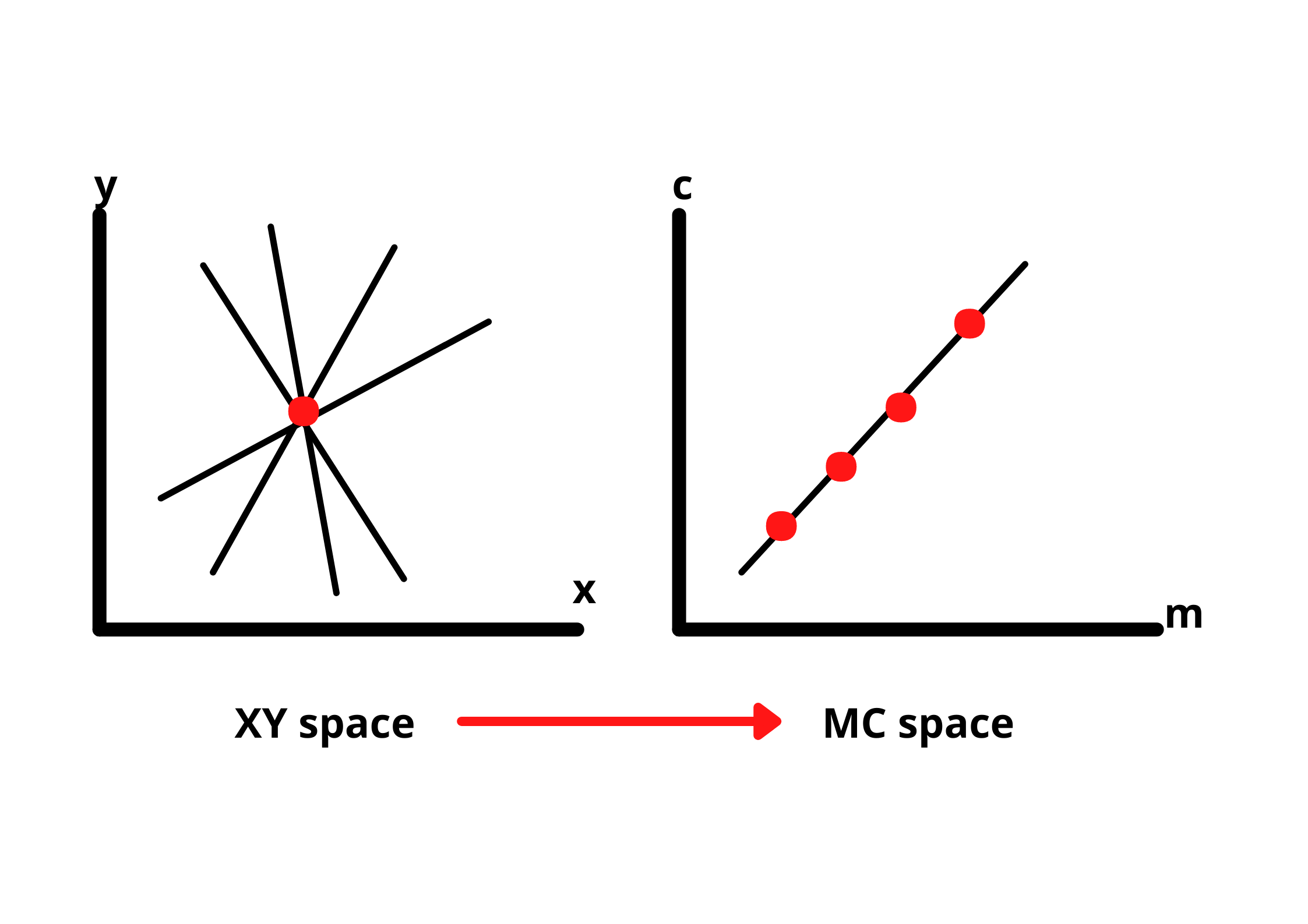 Let's understand this concept by comparing normal X-Y co-ordinate space and hough space (M-C space).