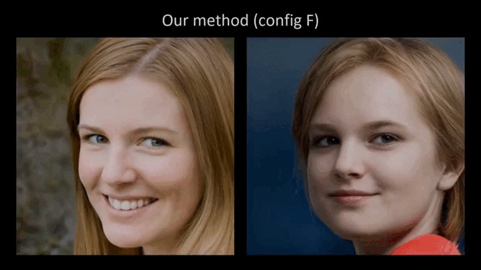 The authors of StyleGAN2 restrict the use of adaptive instance normalization to get rid of the artifacts introduced above. And they actually achieve their goals. We can see in the figure above the results after the changes in architecture and training methods that eliminate the artifacts.