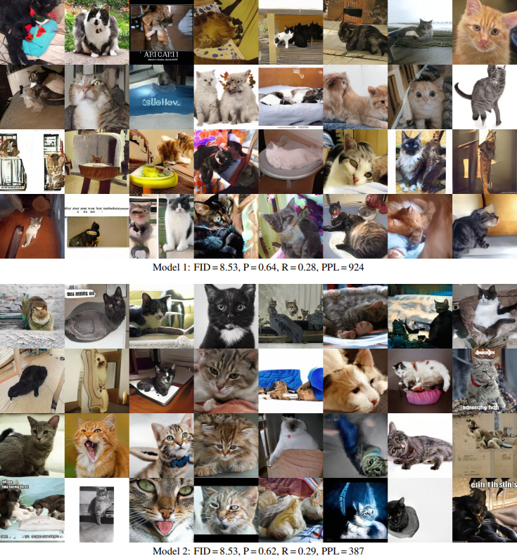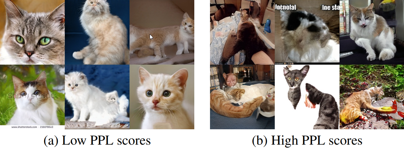 In the appendix of the paper, the authors further provide grids of images that have similar FID scores but different perceptual path length scores, and you can see the grids in the figure below that the groups of images with the lower perceptual path length scores generally are better images.