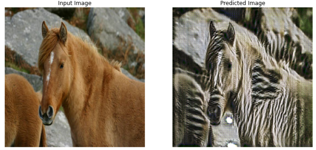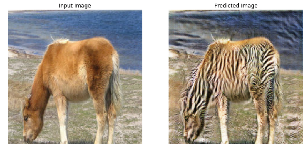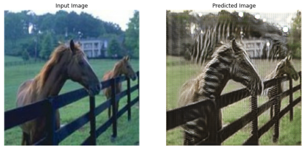 discriminator_y.trainable_variables))Finally, we can start the training process for the defined number of epochs. We will loop through our training data and train the model accordingly. At the end of each epoch, we can generate the resulting image to notice the progression made by the model. We can also save the checkpoints, as shown in the code snippet below.