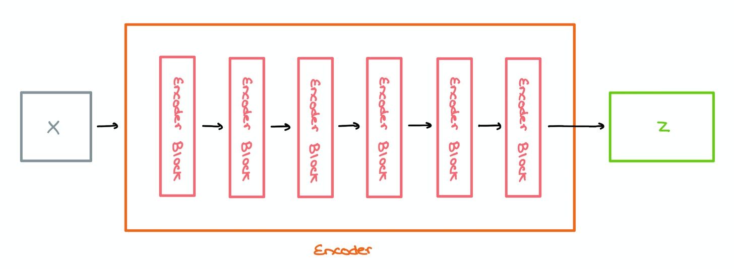 These Encoder Blocks are stacked one top of each other to form the Encoder architecture; the paper suggests stacking 6 of these blocks. Sequences are converted into word vectors and sent in for encoding.