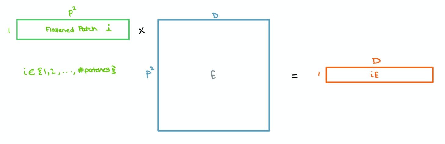 These patches are then flattened and sent through a single Feed Forward layer to get a linear patch projection. This Feed Forward layer contains the embedding matrix $E$ as mentioned in the paper. This matrix $E$ is randomly generated.