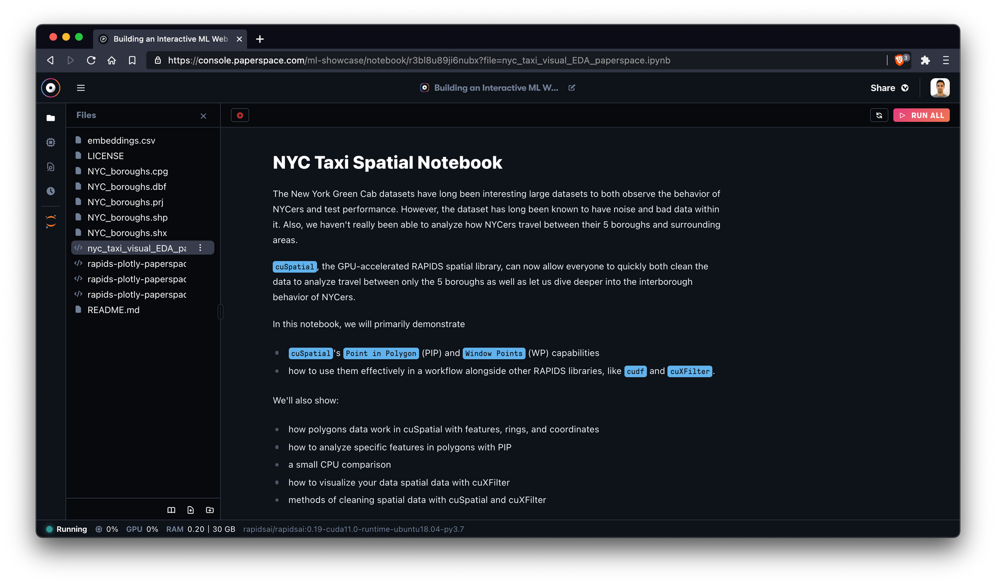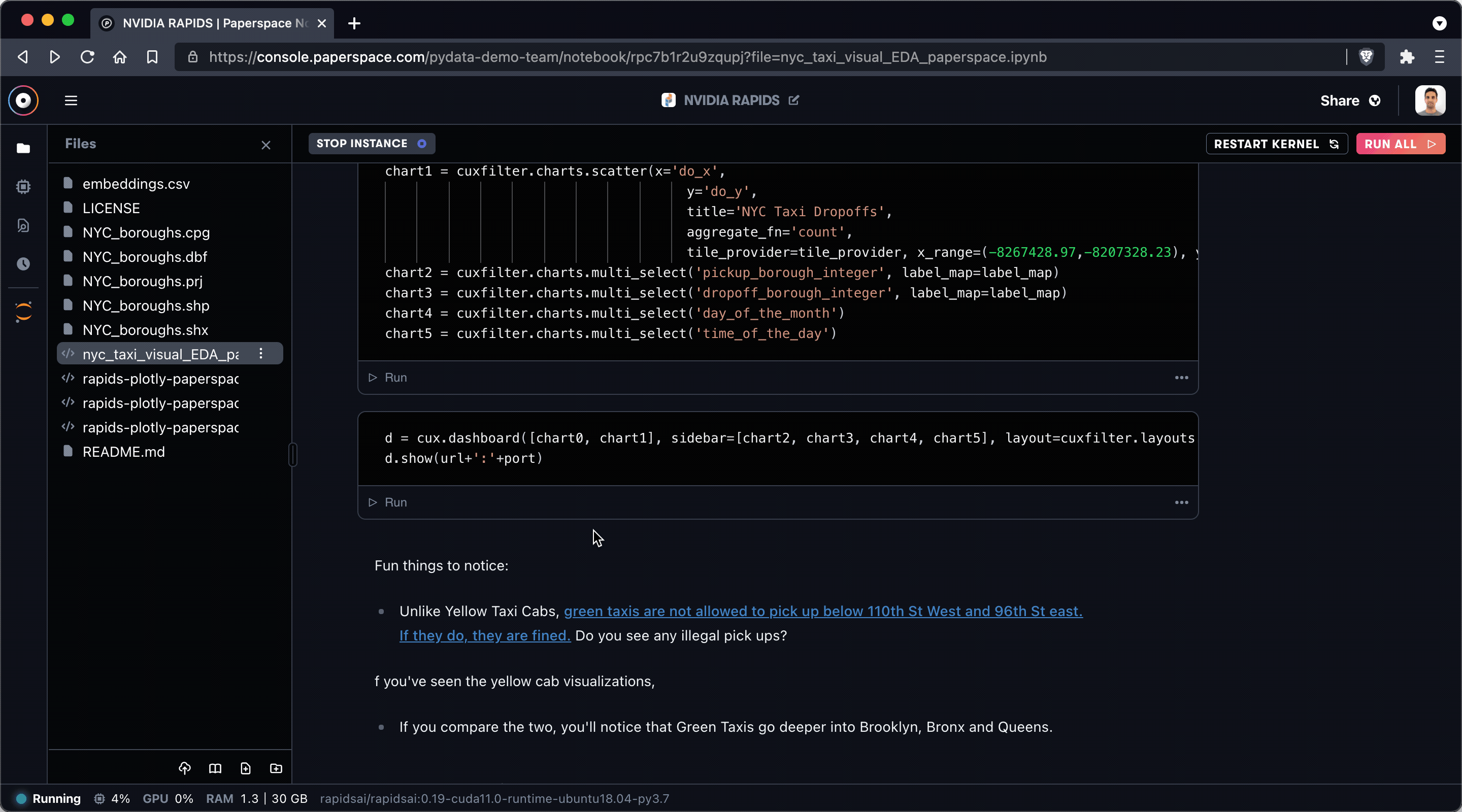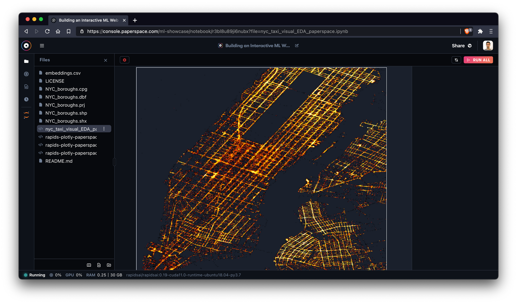 We recently teamed up with folks from RAPIDS and Plot.ly to demonstrate how to generate a web app to perform complex dataset visualizations – all from a Gradient Notebook running on Paperspace.
