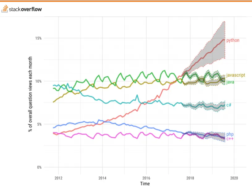 As you can see from the graph below, Python is one of the fastest growing programming languages from the last 5-10 years. Most machine learning and artificial intelligence-related work is done using Python. PyTorch is Pythonic, which means that Python developers should feel more comfortable while coding with PyTorch than with other deep learning frameworks. That being said, PyTorch has a C++ frontend as well.